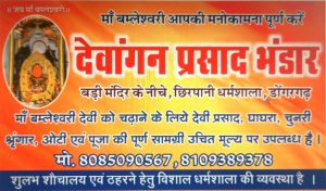 राजनांदगांव जिले में नागपुर से बिलासुपर के बीच पर्वत श्रृंखला में फैले पर्वत के मध्य सर्वोच्च शिखर पर माँ बम्लेश्वरी देवी का विशाल मंदिर स्थित है। डोंगरगढ़ की पहाड़ी पर स्थित शक्तिरूपा मां बम्लेश्वरी देवी का विख्यात मंदिर श्रद्धालुओं की आस्था का केंद्र है। मान्यता है कि मां बम्लेश्वरी देवी से भक्तों द्वारा मांगी गई मनोकामना पूर्ण होती है। बड़ी बम्लेश्वरी के समतल पर स्थित मंदिर छोटी बम्लेश्वरी के नाम से प्रसिद्ध है। कहा जाता है कि यह मां बम्लेश्वरी की छोटी बहन है। इस पर्वत श्रृंखला की नैसर्गिक सुंदरता मनमोहक है। मंदिर चारों ओर हरे भरे वनों पहाडिय़ों, छोटे-बड़े तालाबों से घिरा हुआ है। पहाड़ी के नीचे कामकंदला तालाब है। मां बम्लेश्वरी के मंदिर में प्रति वर्ष चैत्र नवरात्र एवं क्वांर नवरात्र के समय दो बार भव्य मेले का आयोजन किया जाता है। जिसमें लाखों की संख्या में भक्त एवं दर्शनार्थी पैदल एवं अन्य माध्यमों से पहुंचते हैं। डोंगरगढ़ स्थित मां बम्लेश्वरी मंदिर पर जाने के लिए सीढिय़ों के अलावा रोपवे की सुविधा भी है। माँ बम्लेश्वरी देवी का मंदिर 1610 फीट ऊंची पहाड़ी की चोटी पर स्थित है। देश के विभिन्न राज्यों एवं विदेशों से भी भक्त पर्वत पर बने लगभग 1000 सीढिय़ों की कठिन चढ़ाई कर माता के दर्शन के लिए आते हैं। इसके अलावा रोपेवे एक अतिरिक्त आकर्षण का केन्द्र है। प्राचीन काल से ही डोंगरगढ़ दर्शनार्थियों की आध्यात्मिक धार्मिक भावनाओं का केन्द्र है। माँ बम्लेश्वरी को बमलाई दाई या दाई बमलाई, माँ बगलामुखी के नाम से भी जाना जाता है।